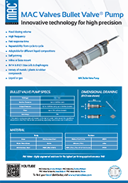 Featured Product: MAC Liquid Bullet Valve® Pump Featured Product: MAC Liquid Bullet Valve® Pump April 21, 2020 mdnmarketing By mdnmarketing April 21, 2020 In MAC News The MAC Liquid Bullet Valve® Pump combines MAC proven liquid technology with extremely precise dosing capabilities for a variety of industries Contact us for more information: https://www.cargoltool.com/contact-us2/ Click to learn more mdnmarketing More by mdnmarketing Share000 3